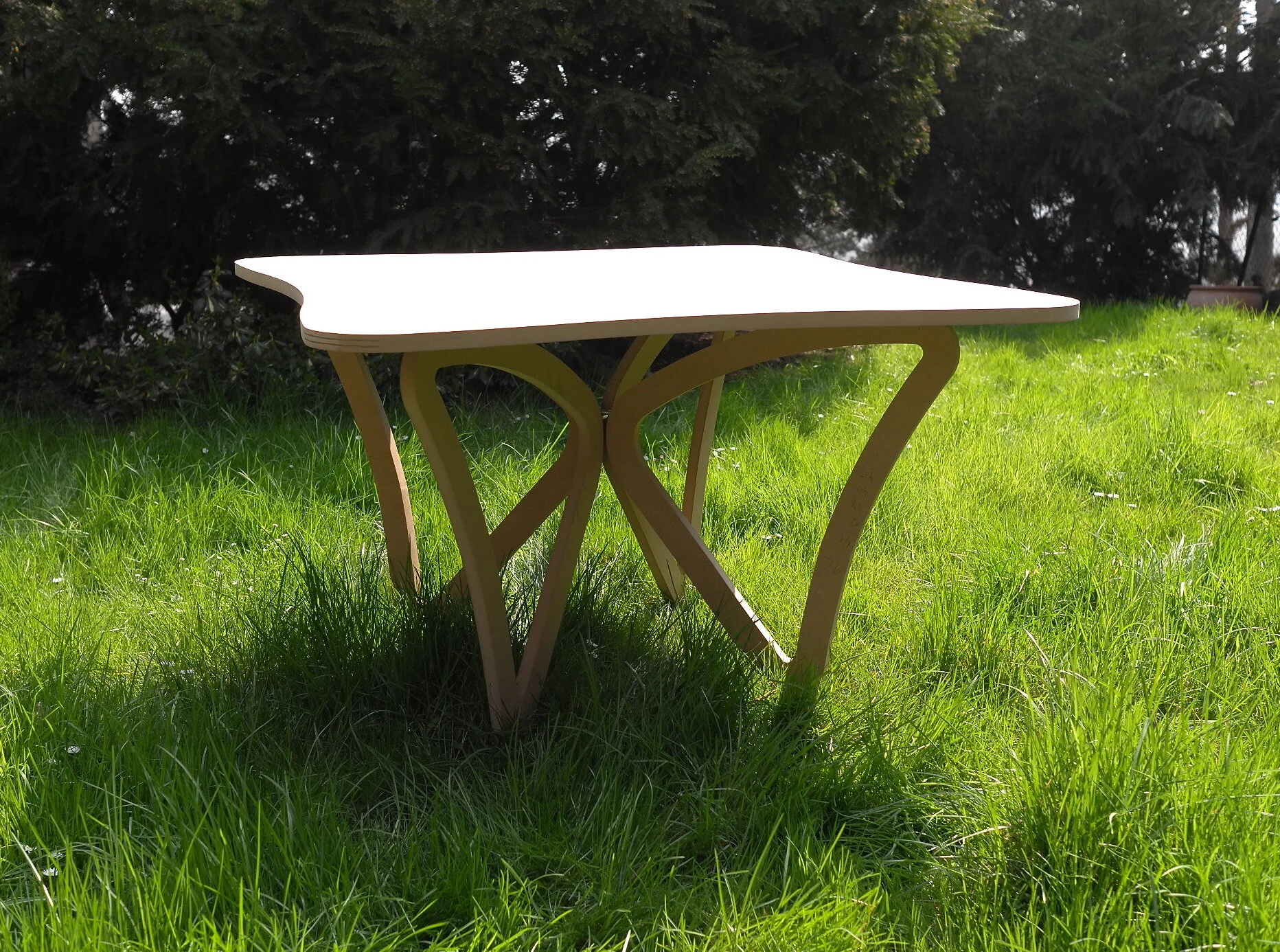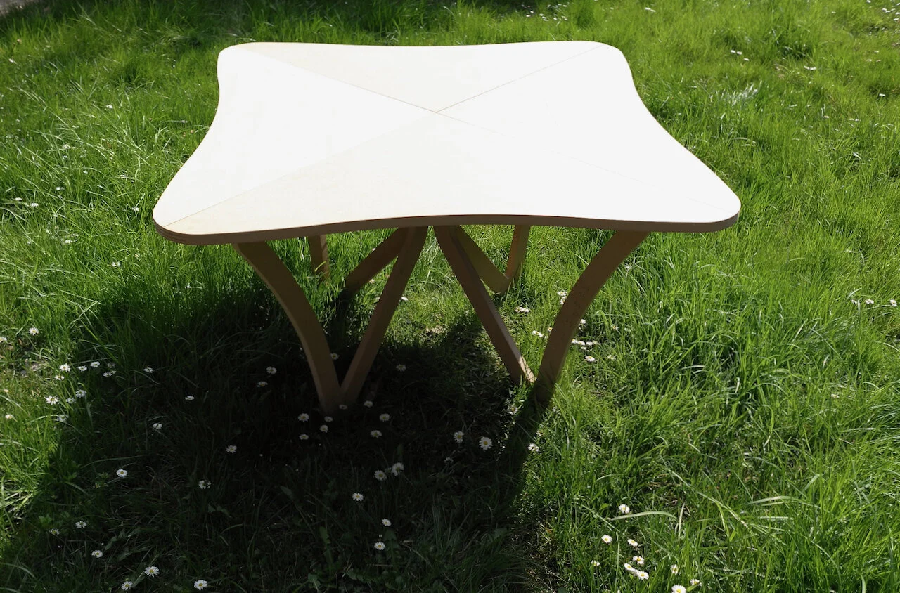 Stůl vychází z motivu motýlích křídel. Je možné ho používat jako konferenční, jídelní nebo pracovní stůl.